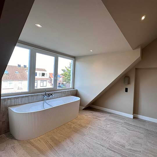 Wil je een extra badkamer in je woning, maar weet je niet zo goed waar? Wij realiseren een complete badkamer op zolder. Van leidingen en indeling tot afwerking. Met slimme oplossingen creëren we een comfortabele en praktische ruimte in jouw woning.